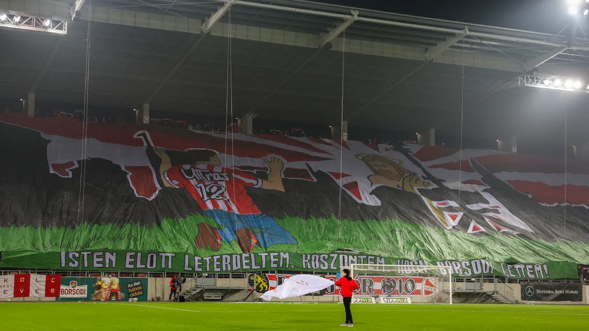 A diósgyőri ultrák kitettek magukért az ősz utolsó mérkőzésén, óriási élőképpel készültek a Ferencváros elleni találkozóra. A DVTK szurkolói által készített drapéria a kapu mögötti szektorokat teljes egészében beterítette, a következő felirattal: „Isten előtt letérdeltem, köszöntem, hogy borsodi lettem!” Az őszi nézőcsúcs is megdőlt a magyar bajnok elleni összecsapáson, a Debreceni VSC elleni (0–0) szeptemberi bajnokin 6279-en ültek a lelátón, ezúttal ezt megdöntve, 6500-an voltak kíváncsiak a Diósgyőr meccsére. ![]() |