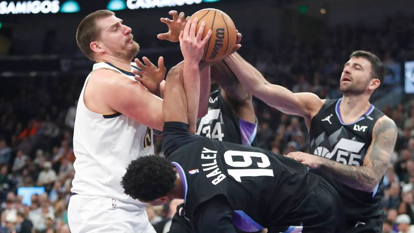 Nem volt könnyű dolguk Nikola Jokicséknak a sötét mezes Utah ellen (Fotó: Getty Images)