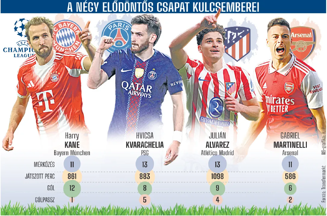 Kialakultak tehát az elődöntők párosításai. Külön ágon vannak a lehengerlő támadófutballt játszó együttesek (Bayern és a PSG) és a betömörülő, keményen védekező és gyors ellenakciókra építkező csapatok (Arsenal és Atlético Madrid). Főleg a párizsiak és a müncheniek összecsapása lesz igazán érdekes, ugyanis a két együttes játszotta a 2020-as BL-döntőt (1–0 a Bayernnek), s azóta szinte váltásban vitték be egymásnak a pofonokat az európai kupaporondon – legutóbb éppen az idei sorozat ligaszakaszában találkozott egymással a két gigász, a Bayern emberhátrányban is nyerni tudott 2–1-re.