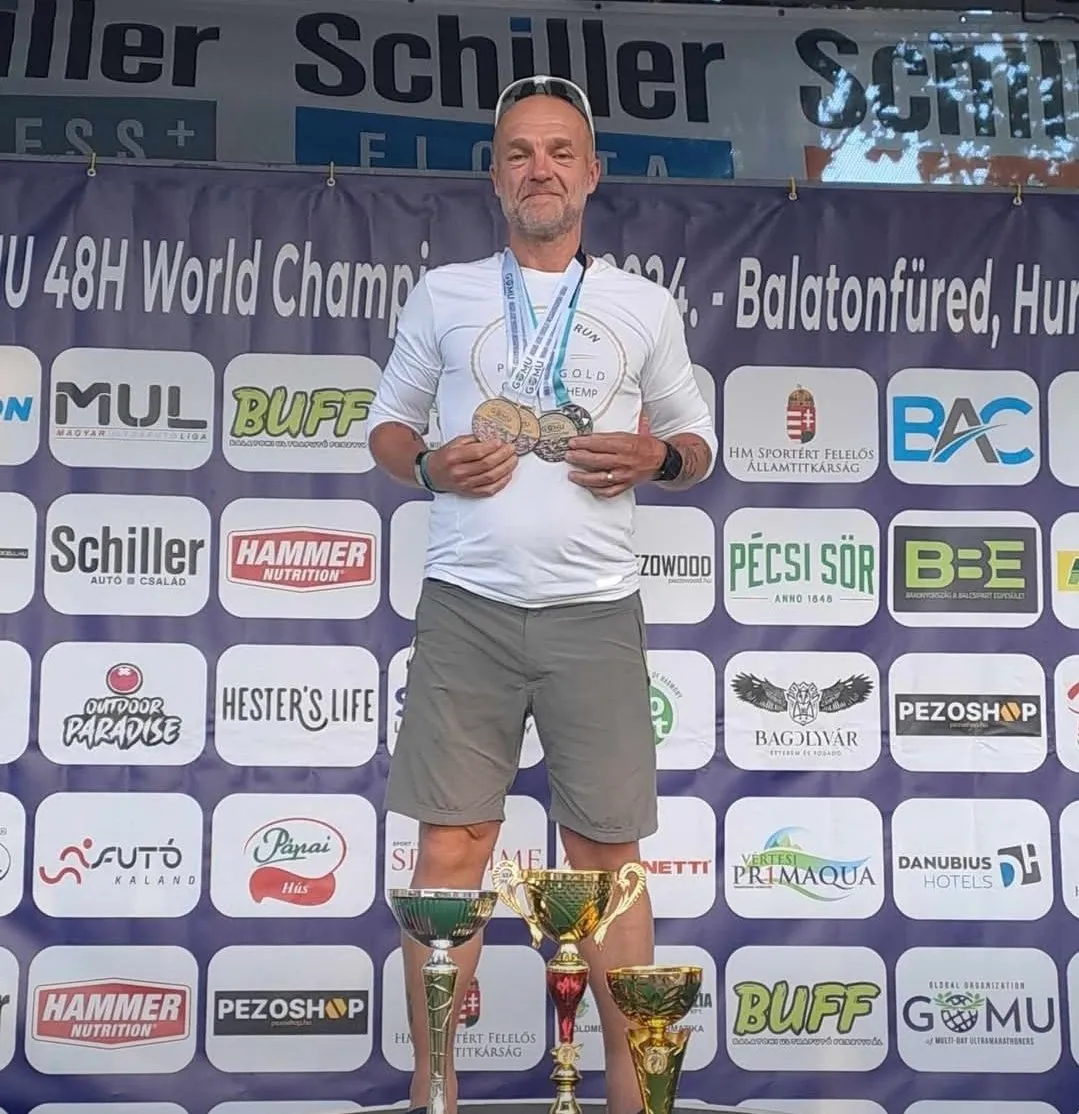 – Jött két felkészülési verseny, a Suhanj6! és a balatonfüredi hatórás, előbbi nem volt túlságosan jó, viszont utóbbi nagyszerűen ment. A Szőlőskörön nagy megtiszteltetés ért, hogy én mutathattam be és futhattam le először a jövő évben bemutatkozó nyolcvan kilométeres távot. Az ötven kilométeres verseny után, ahol korcsoportomban első lettem, lefutottam még harmincat, így jött ki a jövőre debütáló nyolcvan. Majd jött a franciaországi huszonnégyórás világbajnokság, ahol kiváló eredményt értem el, ugyanis megnyertem a korosztályomat. Kifejezetten élvezetes esemény volt számomra, ráadásul szép eredménnyel párosult. Ez volt az első eseményem, amelyet a Nemzetközi Ultrafutó-szövetség (IAU) szervezett, s amelyen a világ legjobb futói indultak, különleges élményt jelentett huszonnégy órán keresztül elit sportolókkal együtt versenyezni. Előzetesen nem tudtam elképzelni, a több száz versenyző miképp fér el a pályán, de remekül megoldották a szervezők, bár néhol azért kerülgettük egymást. Arra mindenki figyelt, hogy a gyorsabb futókat hagyja haladni. A hangulat nagyon jó volt, egy-két éjszakai nehezebb időszakon ez segített át. Végig nagyszerűen éreztem magam ebben a közegben. Annak örülök, hogy két célomat is teljesítettem, így a korosztályomban érmet szereztem, illetve megdöntöttem a korosztályos országos rekordot. Talán erőltetett tempóval meg tudtam volna dönteni az egyéni csúcsomat is, de ez túlságosan nagy kockázattal járt volna, ezt pedig semmiképpen sem akartam vállalni. Stabilan fejeztem be a versenyt. Mindent egybevéve jó iramban futottam, sokat tanultam belőle, a jövőben még jobban figyelek a frissítésre. Ezt követően az esztendő végén még néhány bulifutáson vettem részt, majd kis pihenőt követően elkezdtem a felkészülést a következő idényre.