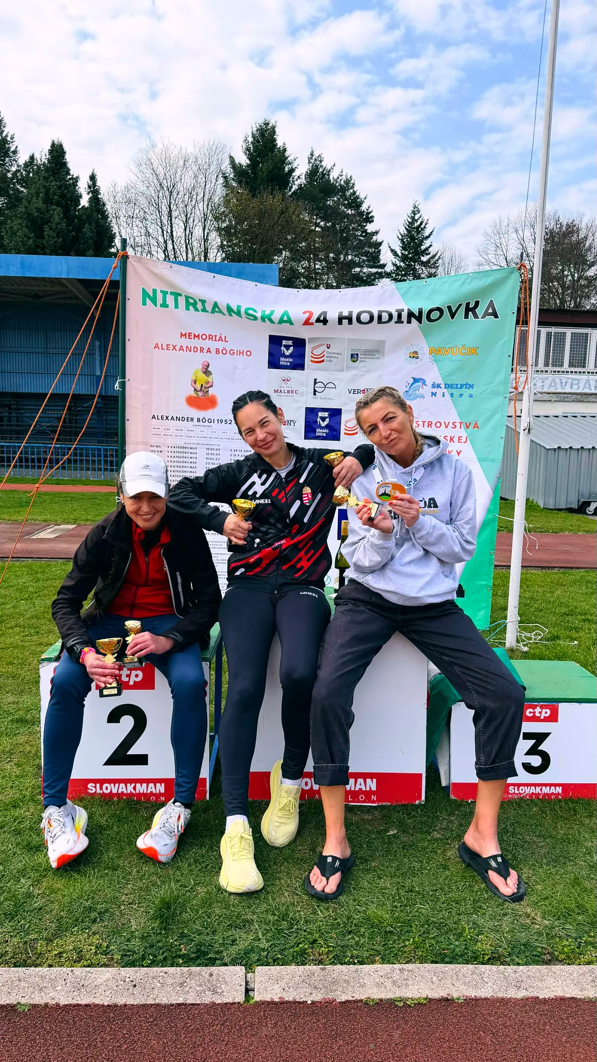 – Illetve volt két segítőnk, Csécsei Zoltán és Drexler Gábor. Anikó száznyolcvannyolc kilométerrel megnyerte a versenyt, Csécsei Zoltán barátnője, Sandra Kvakova lett a második, míg én százhatvankét kilométert megtéve a harmadik. Mivel nem vették külön a nyílt és a szlovák országos bajnoki futamot, így mi hárman voltunk ott a dobogón. Korosztályban második lettem a harmincöt-negyvenes kategóriában, de mindent egybevéve ez a kilométerszám gyenge huszonnégy órán. Egyáltalán nem vagyok elégedett. Az októberi franciaországi világbajnokságon megsérültem, sajnos azóta nem épültem fel teljesen belőle. A Balaton Szupermaraton után három hetem volt összeszedni magam, mindent bevetettem, de éreztem a farizmomban még mindig a húzódást, és nem sikerült elérnem a célom, azaz a száznyolcvan kilométert. Ez van, sajnos abból főzök, amim van, ameddig nem épülök fel teljesen, addig hiába teszek meg mindent, nem tudok jobb lenni.