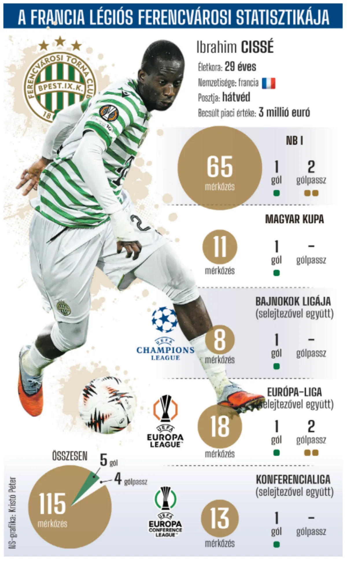 Ibrahim Cissé, a Ferencváros védője a hátvédsor jobb oldalán futballozva az egyenlítő gólból kivette a részét, a támadáshoz felérve ő adta a gólpasszt Ötvös Bencének. A francia légiós fáradtan, ám annál boldogabban lépett ki az öltözőből, a Groupama Aréna előtt a családja várta.