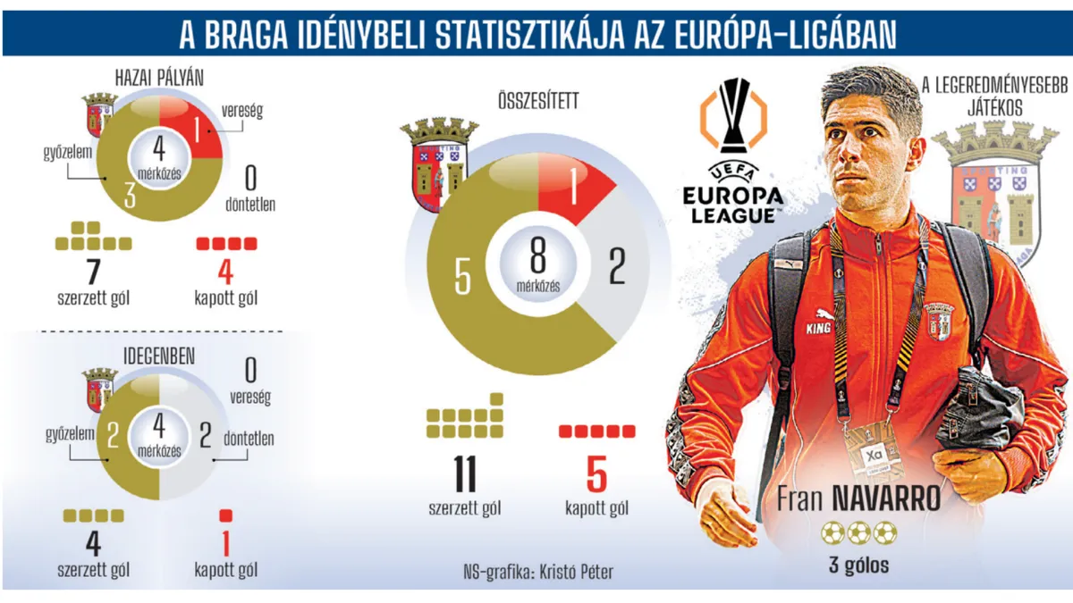 – Nálam hatvan–negyven a Braga javára. Van azonban egy kényes pont a portugáloknál: ha a bajnokságban nem jól alakulnak az események a Fradi elleni meccsig, a zöld-fehéreknek nagy esélye nyílhat a továbbjutásra. Ahogy említettem, a Bragára fontos találkozó vár az európai kupameccsek előtt, és igazából utánuk is, mert a Portóval találkozik. A futball pedig pillanatjáték, semmi több. Az El-párharc során a két csapat közül nagyobb eséllyel a Braga lesz az, amelyik nem tud majd tökéletes állapotban pályára lépni. Legutóbb idegenben játszott Madeirán, a hétvégén következik a Sporting, majd a Ferencváros idegenben – rengeteg utazás és nehéz mérkőzés rövid időn belül. A Fradi ezzel szemben olyan csapatokkal találkozik, amelyek a kiesés ellen küzdenek, és repülőre sem kell szállnia. Ilyenkor minden apróság számít. A Braga játékstílusát nem nehéz elemezni, de annál nehezebb hatástalanítani. Jó csapat, általában látványos futballt játszik, rengeteg helyzetet alakít ki, ráadásul többféle módon.
