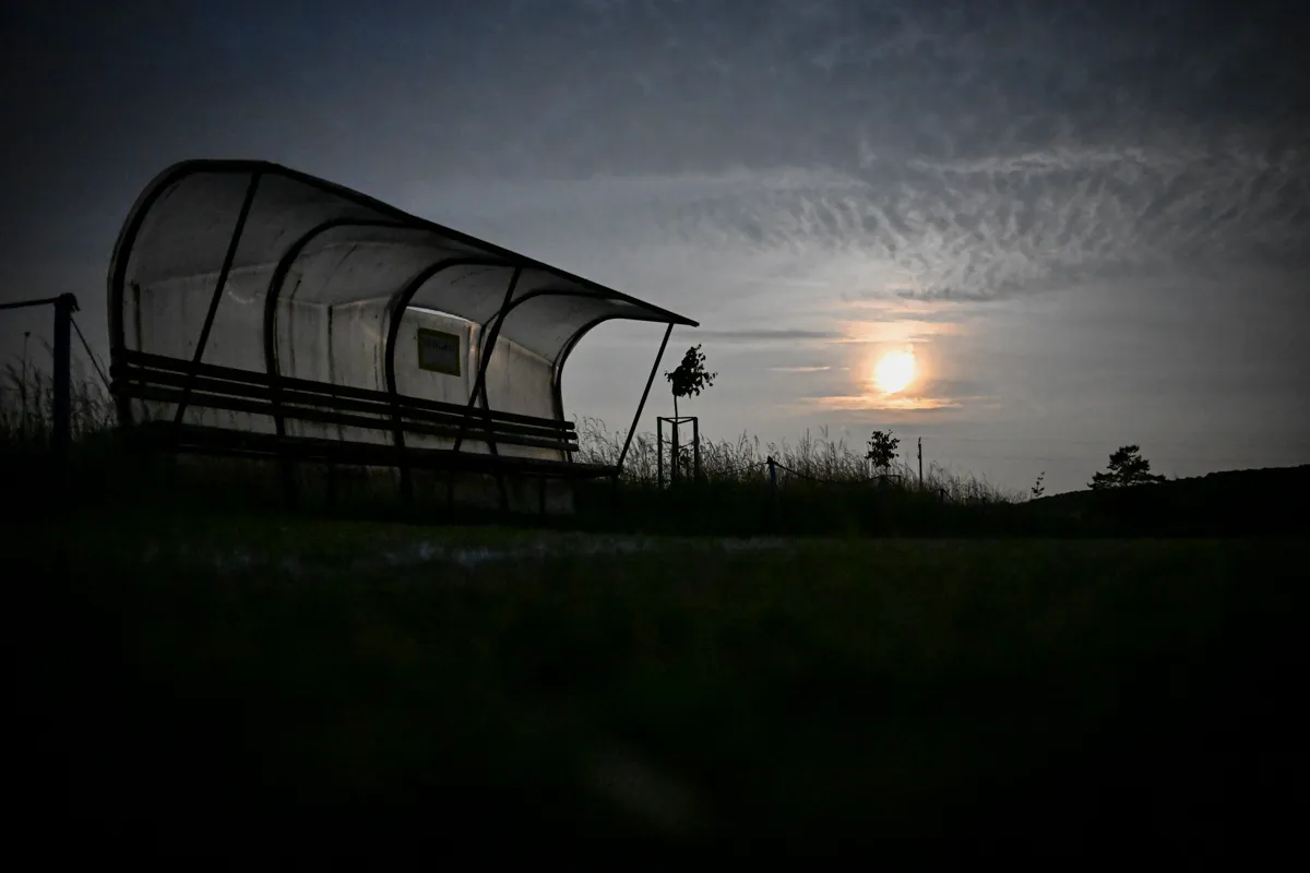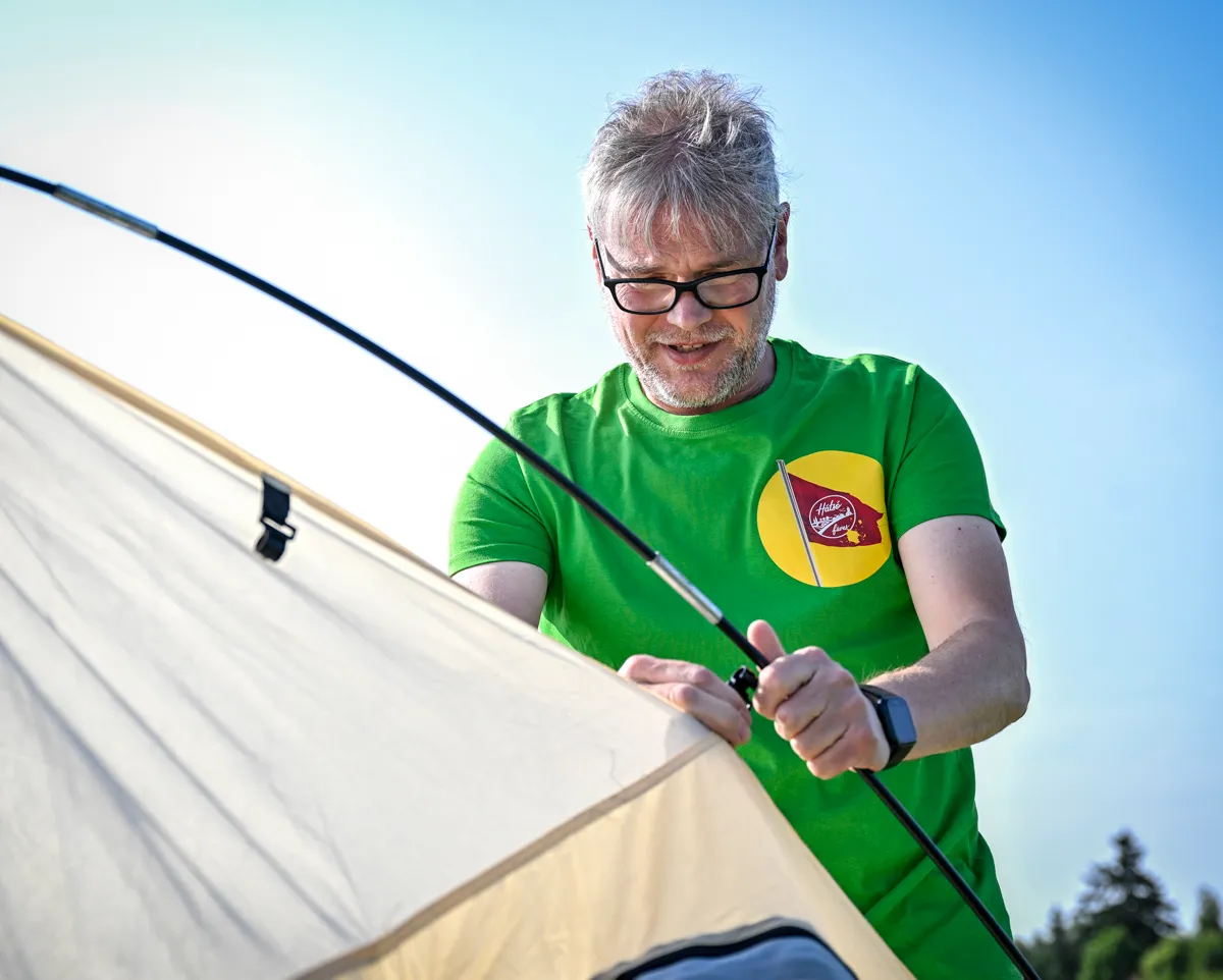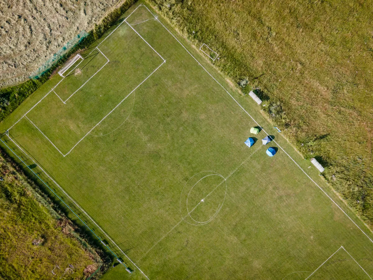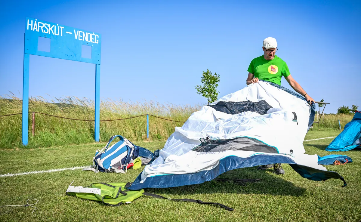 A nap végén nem marad más hátra, mint felverni a sátrakat a környék futballvilágának ötcsillagos kempingjében: a hárskúti pálya felezővonalánál...