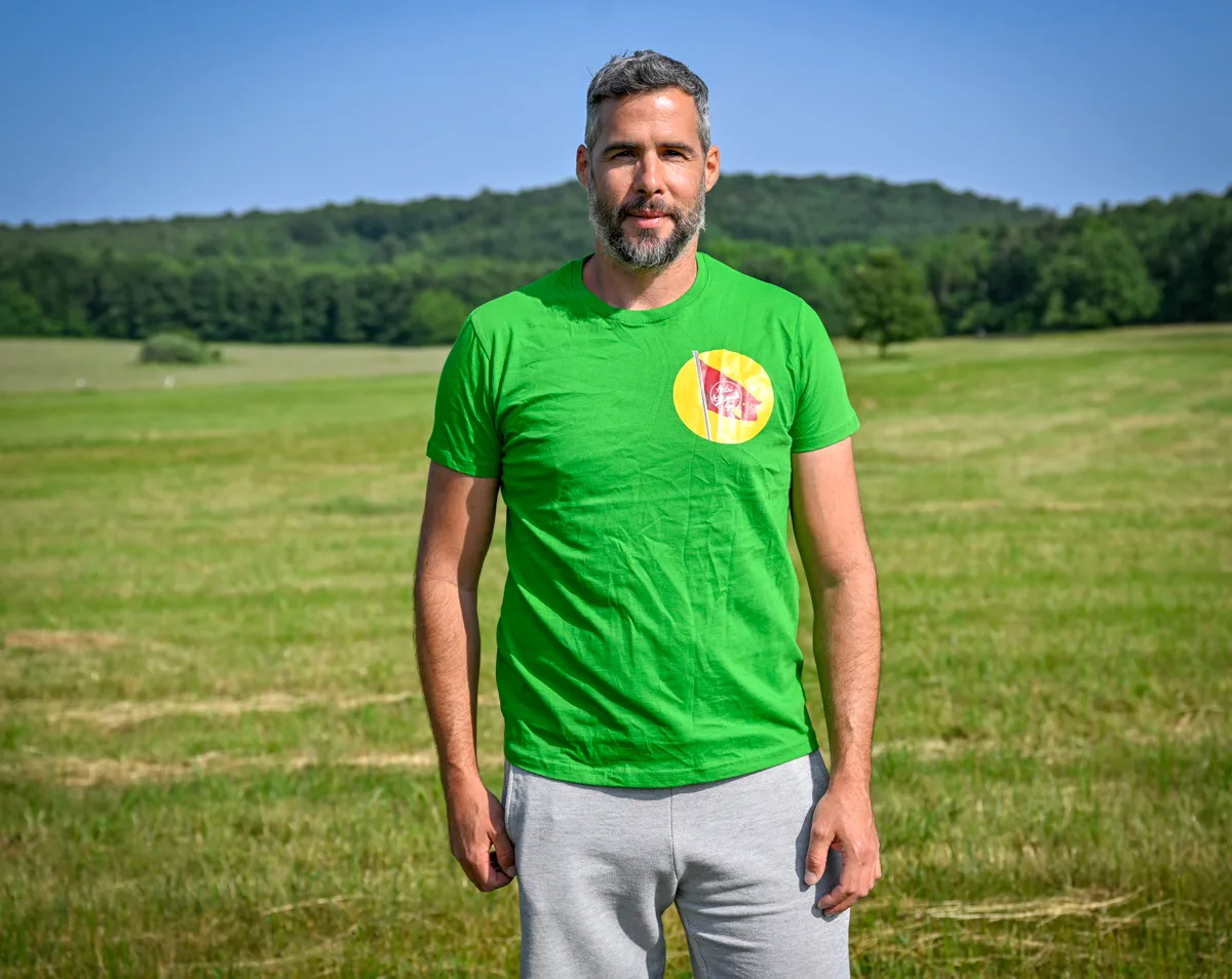 Az egyébként Nemesvámoshoz és Herendhez kötődő sportember Hárskút határában csatlakozik egy szakaszon a kirándulókhoz, és beszél egyebek mellett a környéken gyűjtött élményeiről: „Gyönyörű pályákat, sok hangulatos erdei katlant találni a Bakonyban. Jó példa a csetényi, amelynek a fák ölelésében olyan hatása van, mint egy nagy stadionnak, a természettől körülzárt játéktér a szurkolókban is hasonló érzést kelt.”