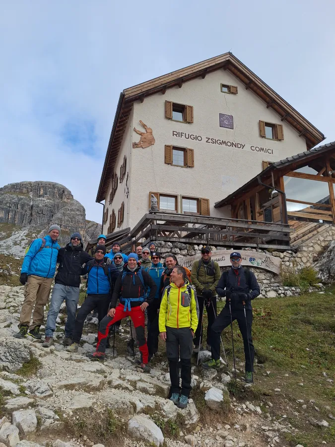 Tavaly a horvátországi Velebit-hegységben, a Gojko Mitics-féle indiánfilmek forgatási helyszínén járt a csapat (A jugoszláv Winnetou nyomában címmel közöltünk riportot a tapasztalatokról), az idén pedig a Sexteni-, vagy olaszul Sestói-Dolomitok mesebeli vidékére rajzolta fel éves kihívását. Amikor az előzetes tervek során világossá vált, hogy a túrabázis a környék magyar vonatkozású igazodási pontja, a Zsigmondy-hütte lesz, jelen sorok íróját a közös túrázás csábítása mellett személyes ösztönzés is sarkallta a jelentkezésre: az apai nagymama, született Zsigmondy Éva ágán családi szál köt a hegymászó felmenőhöz.