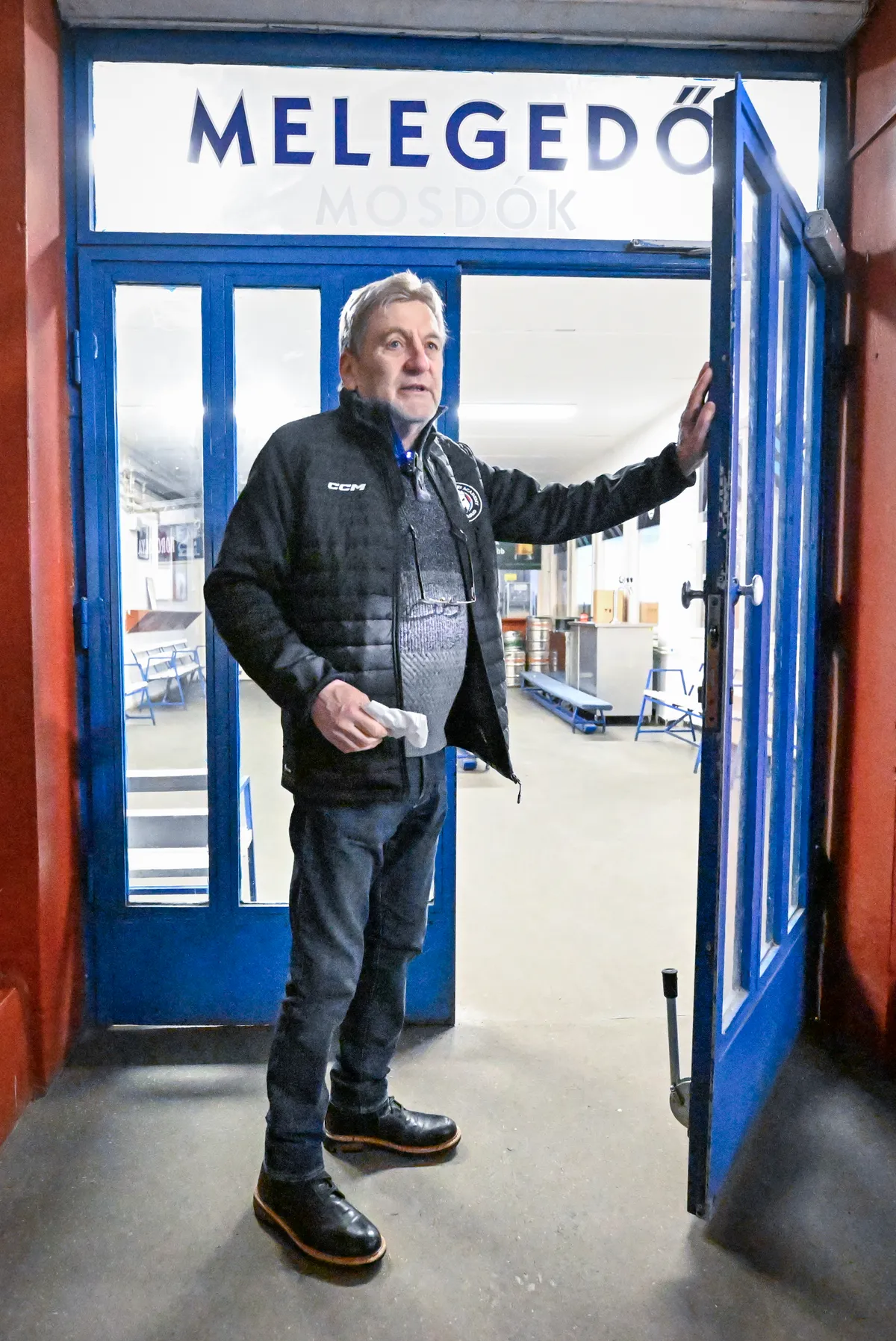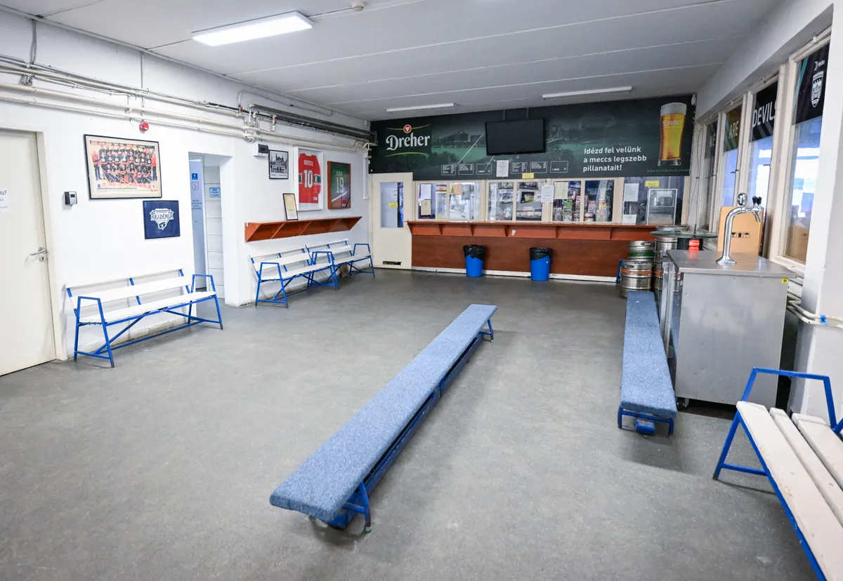 „A melegedő a legrégebbi épületegysége a csarnoknak. Itt volt az egyik csapat öltözője, ott pedig a bírói öltöző. Szerintem nem volt húsz négyzetméternél nagyobb, és én 25 gyerekkel öltöztem benne. Most meg van több mint tíz öltöző, és még mindig kevés. Ott van egy barna ajtó, mögötte volt a ruhatár, mert ugye ez a pálya azért épült, hogy legyen nagyon sok közönségkori is. 1977 végétől azért kellett harcolnom a pályát üzemeltető várossal, hogy bebizonyítsam, a kutya nem jön ide hétköznap korcsolyázni. És akkor eljutottunk odáig, hogy csak szombaton és vasárnap jött korizni a nagyközönség, az összes többi jégidőt átvette a versenysport, a jégkorong, a műkorcsolya és minden más. A melegedő teteje másra is szolgált, például kommentátorállás is volt ott régen. Az 1981-es bajnokcsapat a BEK-ben holland együttest fogadott, amely tele volt kanadai játékosokkal. Knézy Jenő az épületsor tetején egy emelvényen ült, onnan közvetített. Telt ház volt, persze nem volt nagy a befogadóképesség, de nem is volt könnyű kihozni az embereket. A közönségkori nagy siker volt, húsz évig éleztem a korcsolyákat, az edzői fizetésből nemigen lehetett megélni, mellette én intéztem mindent a csapatnak is.”