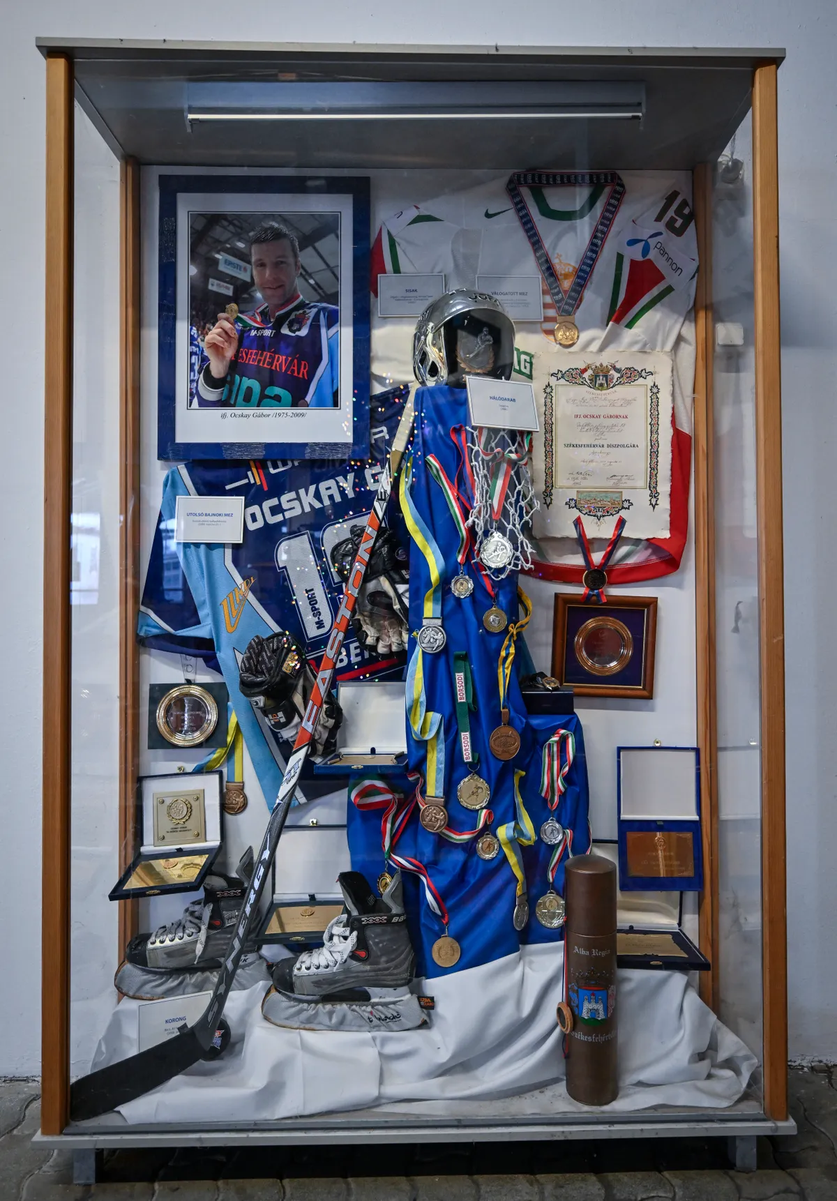 Néhány héttel az A-csoportos világbajnokság előtt, 2009 tavaszán felfoghatatlan tragédia történt: ifjabb Ocskay Gábor március 25-én heveny szívelégtelenség következtében, mindössze 33 évesen elhunyt. A Raktár utcai csarnok az ő nevét őrzi, ahogy a fehérvári hokiakadémia és egy alapítvány is, a szobra pedig ott áll az újjáépítésre váró létesítmény előtt. „Bíztam benne, hogy miután a csarnok az átfogó rekonstrukció után 2026 végén újra megkezdi működését, továbbra is Gábor nevét viseli, és ez még hosszú évtizedekig így is marad – mondta az édesapa. – Nagyon fontos, hogy szintén a fiam nevét viselő akadémiát jelenleg olyan emberek vezetik, akik játékostársai voltak és jó kezekben van az utánpótlás. A múltat, a hagyományokat tisztelni kell, megőrizni, enélkül nem lehet gyökeret ereszteni. Kellenek az olyan emberek, akiknek lokálpatriótaként szívügyük a fehérvári hoki.” ![]() |