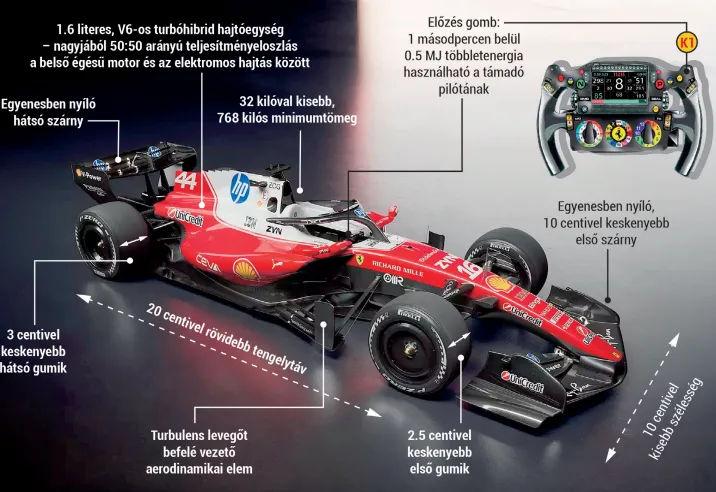 Minden 2020 őszén kezdődött… A Honda akkor jelentette be, hogy a következő év végén elhagyja az F1-et, így félő volt, hogy a csúcskategóriában szégyenszemre csupán három motorgyártó (Ferrari, Mercedes, Renault) marad. A vb-sorozat vezető szereplői ezért elhatározták, hogy mielőbb olyan motorformulát alkotnak meg, amellyel több érdeklődőt vonzanak be, ehhez pedig jó néhány nagy márka képviselőinek véleményét is kikérték. Hamar kikristályosodott, hogy két fontos tényezőn kell változtatni a bővítés érdekében: megnövelni az elektromos energia szerepét a hajtásláncban, egyúttal kivenni a rendszerből a költséges, bonyolult és az utcai autógyártásban irreleváns hőenergia-átalakítót (MGU-H). Így jutottunk el a 2026-os végeredményig, amely egy 1.6 literes V6-os turbóhibrid, az eddiginél háromszor nagyobb teljesítményű (350 kW) elektromos erőforrással, amelyből körönként a korábbi energiamennyiség több mint kétszeresét (8.5 megajoule) lehet kinyerni. Az elektromos meghajtás nagyjából a felét teszi ki a mintegy ezer lóerős összteljesítménynek – a másik felét a belső égésű motor szolgáltatja. Fékezéskor és lassításkor a kinetikus energiaátalakító (MGU-K) generálja az elektromos energiát, amelyet az akkumulátorból lehet felszabadítani.