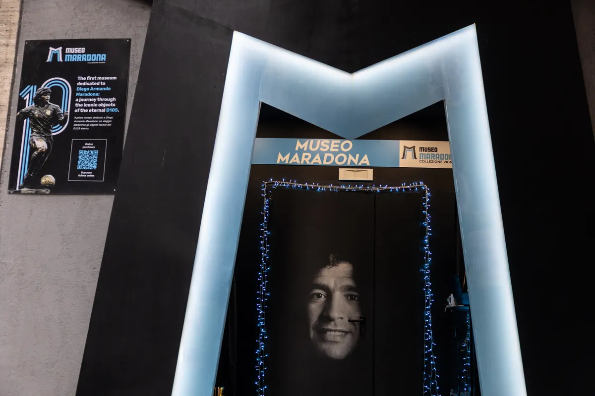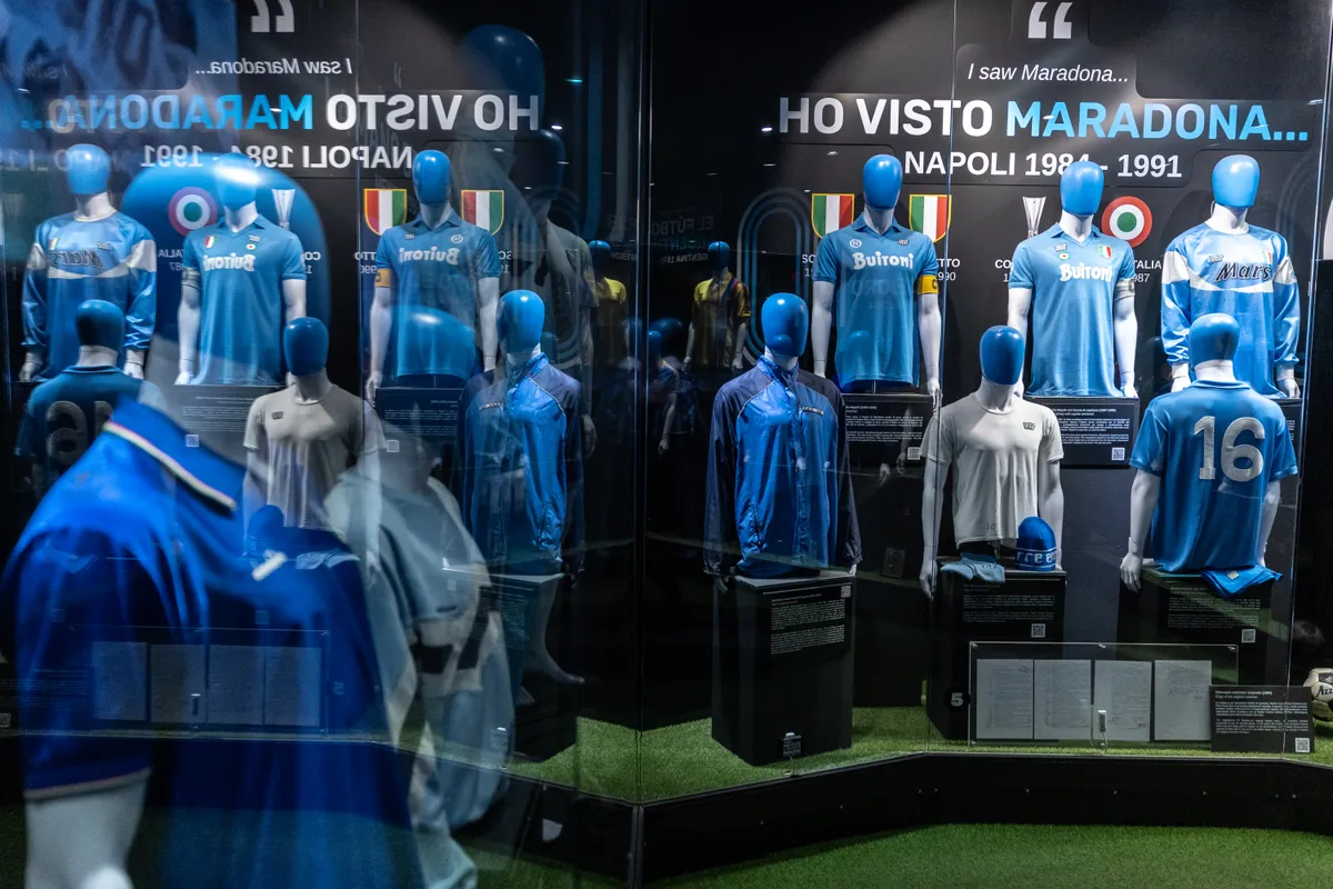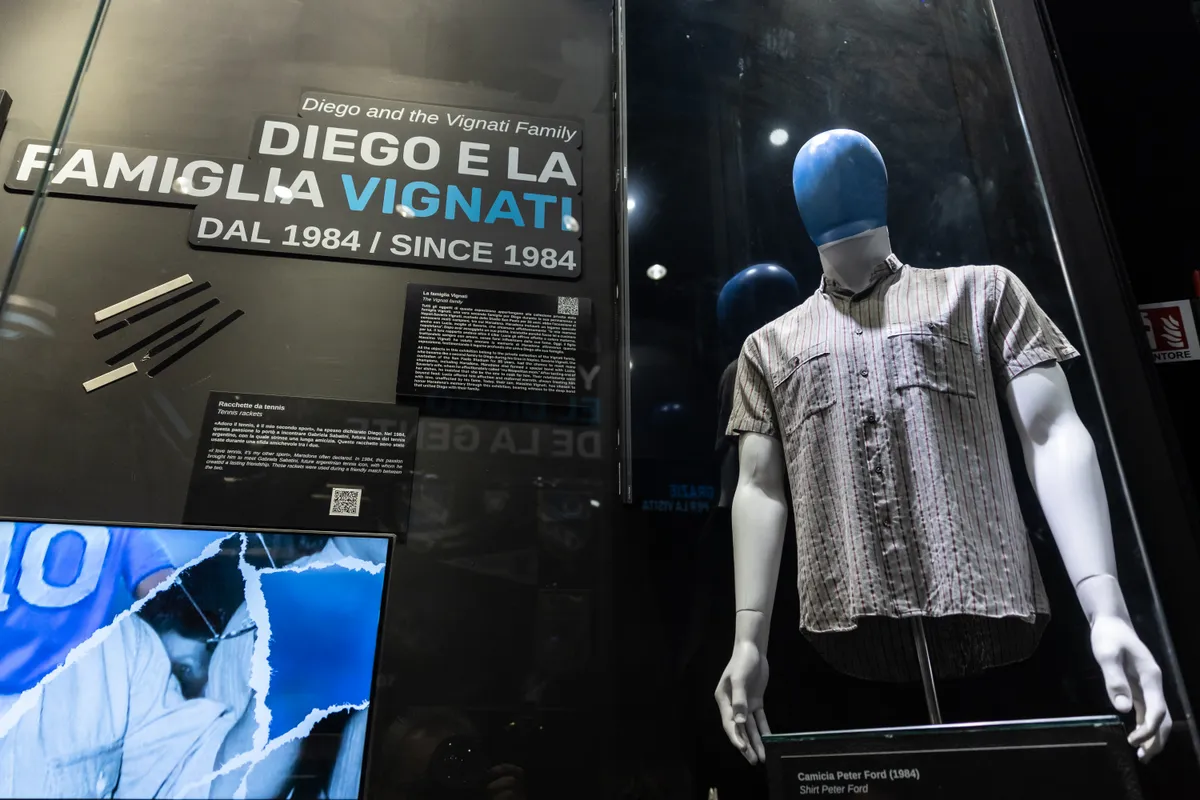 A kissé fellengzősen múzeumnak nevezett kiállítóhelyiségben az egykori játékos számos személyes tárgya megcsodálható: ott van a vitrinek mögött egyebek mellett az ing, amelyet Olaszországba érkezése napján viselt 1984-ben, az 1989-es UEFA-kupa-elődöntő előtti, nevezetes dekázós videóról (Live Is Life…) ismerős melegítőfelső és egy furcsa, drogellenes meccsen viselt speciális mez is. Emiliana, a Maradona Múzeum idegenvezetője adott betekintést a kulisszák mögé.