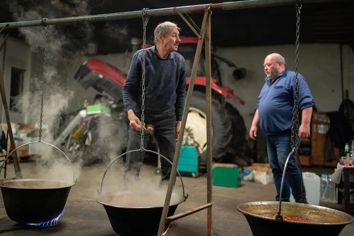 „Mi, akik a pörköltet készítettük, mindannyian futballoztunk valamikor, most pedig így próbálunk segíteni a csapatnak – ad betekintést a kulisszák mögé Tóth László, vagy ahogy a futballpálya környékén ismerik: Totti. – Tegnap daraboltuk össze a nyersanyagot, voltunk rá vagy tizenöten, a kondérok mellett hatan maradtunk. Négy birkát dolgoztunk fel, továbbá hatvan kiló sertéshúst főzünk meg. Délután kettőkor kezdtünk, este nyolc órára, a vacsora kezdetére minden kész. A boldogházi birka titka a hagyományos fűszerezés, só, bors, paprika, vöröshagyma, fokhagyma – ennyi. Az alap persze a jó hús, tudtommal Lantosné Piroskáéktól származik idén a birka, ott a régi módszer szerint, szabadtartásosan nevelik az állatokat, kiterelik, legeltetik őket, ez érződik a hús minőségénél.”