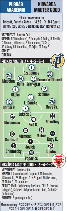 14.30: Puskás Akadémia FC–Kisvárda Master Good (Tv: M4 Sport) – élőben az NSO-n!