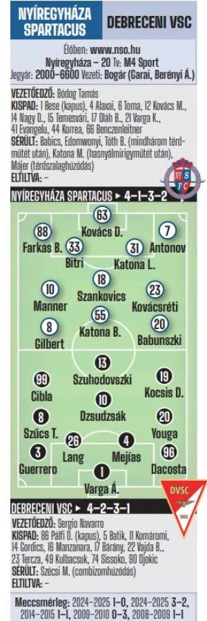 LANG Ádám, a DVSC védője: – Az edzőváltás után a Nyíregyháza mentálisan erősebbnek tűnik, szervezettebbé vált. Tudjuk, milyen hangulat és környezet vár minket, az érzelmeinket a helyén kell kezelni, a játékkal kell foglalkoznunk. Hideg fejjel, profin le kell hoznunk a meccset!