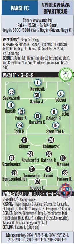 15.30: Paksi FC–Nyíregyháza Spartacus FC (Tv: M4 Sport)