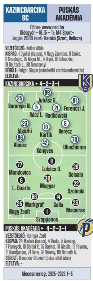 16.15: Kolorcity Kazincbarcika SC–Puskás Akadémia FC, Miskolc (Tv: M4 Sport+) – élőben az NSO-n és a Nemzeti Sportrádióban!