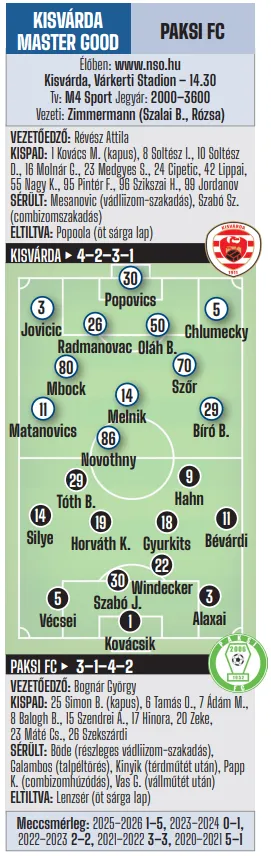 14.30: Kisvárda Master Good–Paksi FC (Tv: M4 Sport)