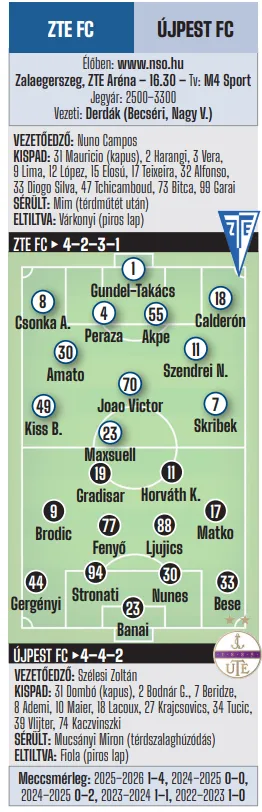 16.30: Zalaegerszegi TE FC–Újpest FC (Tv: M4 Sport)
