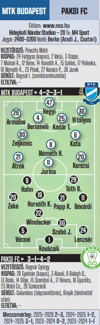 20.00: MTK Budapest–Paksi FC (Tv: M4 Sport) – Sportoló Nemzet Klubkártyával diákok és kísérőik ingyen látogathatják (Felajánlott jegy: 50 db, https://sportolonemzet.hu/tanev-programok/mtk-budapest/) – élőben az NSO-n és a Nemzeti Sportrádióban!
