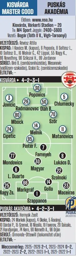 20.00: Kisvárda Master Good–Puskás Akadémia FC (Tv: M4 Sport) – élőben az NSO-n és a Nemzeti Sportrádióban!