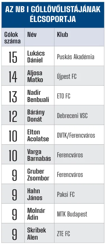 Ráfordultunk a véghajrára: kiegyenesedett az NB I tabellája, így már nem kell minden lehetséges jóslat után hozzátenni, hogy „ha a Ferencváros megnyeri elmaradt mérkőzését a Puskás Akadémia ellen”. Kedden megnyerte, pontszámban beérte az ETO-t, és több győzelmének köszönhetően a vezetést is átvette. Gruber Zsombor a mérkőzés előtt lapunknak azt nyilatkozta, nem akarnak hazai pályán ismét futni az eredmény után, mégis kellett. Lukács Dániel ráijesztett a hazaiakra, ám az őszi mérkőzéssel (1–2) ellentétben ezúttal sikerült a fordítás a Ferencvárosnak, ráadásul megnyugtatóan hamar, még az első félidő lefújásáig. Látva az első 33 percet, valamint a második játékrészt, ez a kitűnő reakció kulcsfontosságú lehetett a bajnoki aranyérem szempontjából, hiszen e rövid időszakon kívül sok mindent nem alkotott Szappanos Péter kapuja előtt a Fradi.