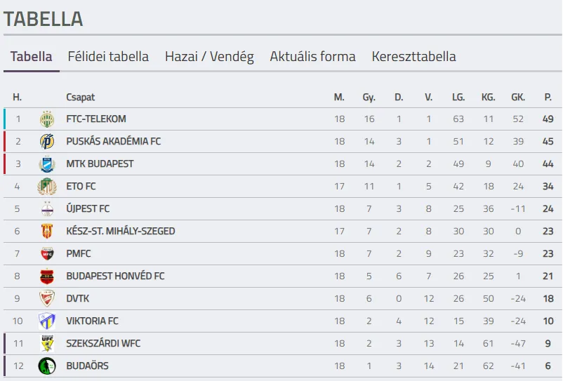Egy mérkőzés maradt vasárnapra a női első osztályú labdarúgó-bajnokság 18. fordulójából: a fővárosi rangadón a Budapest Honvéd az Újpest FC-t fogadta. A mérkőzés végeredménye már az első negyedórában kialakult: a 10. percben a vendégek Erdész Fanni góljával vezetést szereztek, de nem örülhettek sokáig előnyüknek, négy perccel később ugyanis Vachter Fanni betalált a kapujukba, így a kispestiek legalább az egyik pontot otthon tudták tartani.