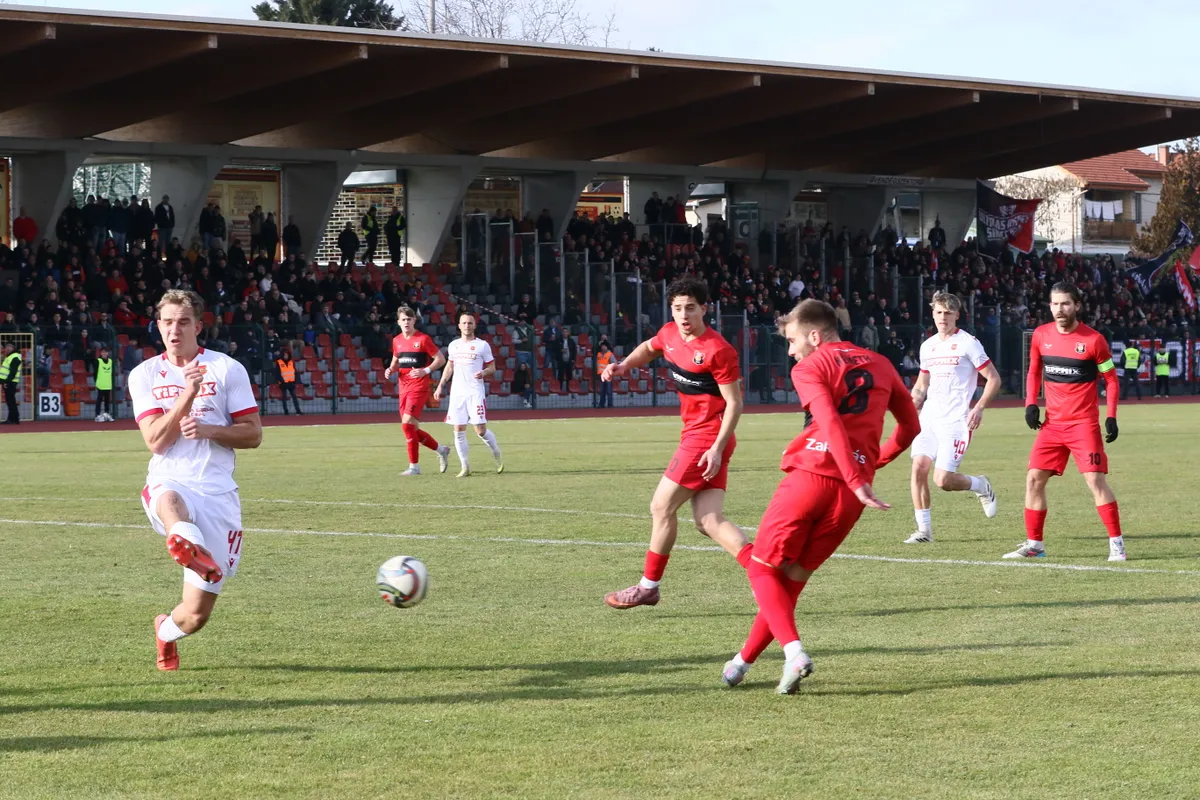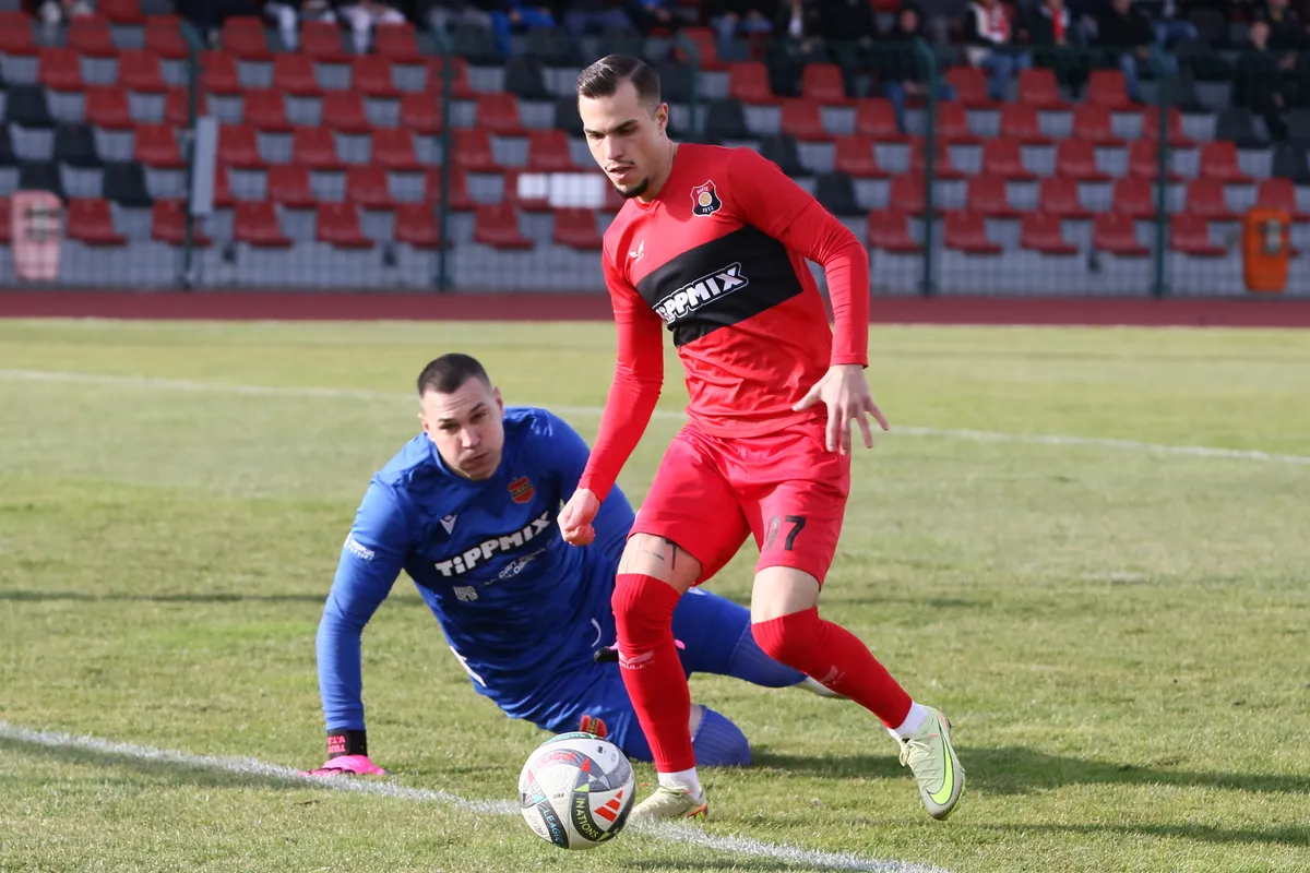 29. perc: Kovács Dávid ugrott ki egyedül, de 17 méteres lövését Tujvel bravúrral, lábbal védte.