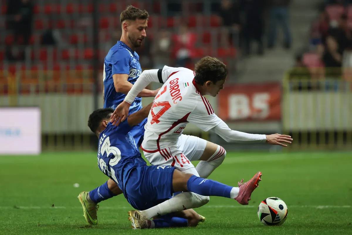 Szécsi beadása egy védőről a léc alá pattanna, de figyel Gundel-Takács. Kontra, Lang szereli kemény becsúszással a jobb szélen Krajcsovicsot.