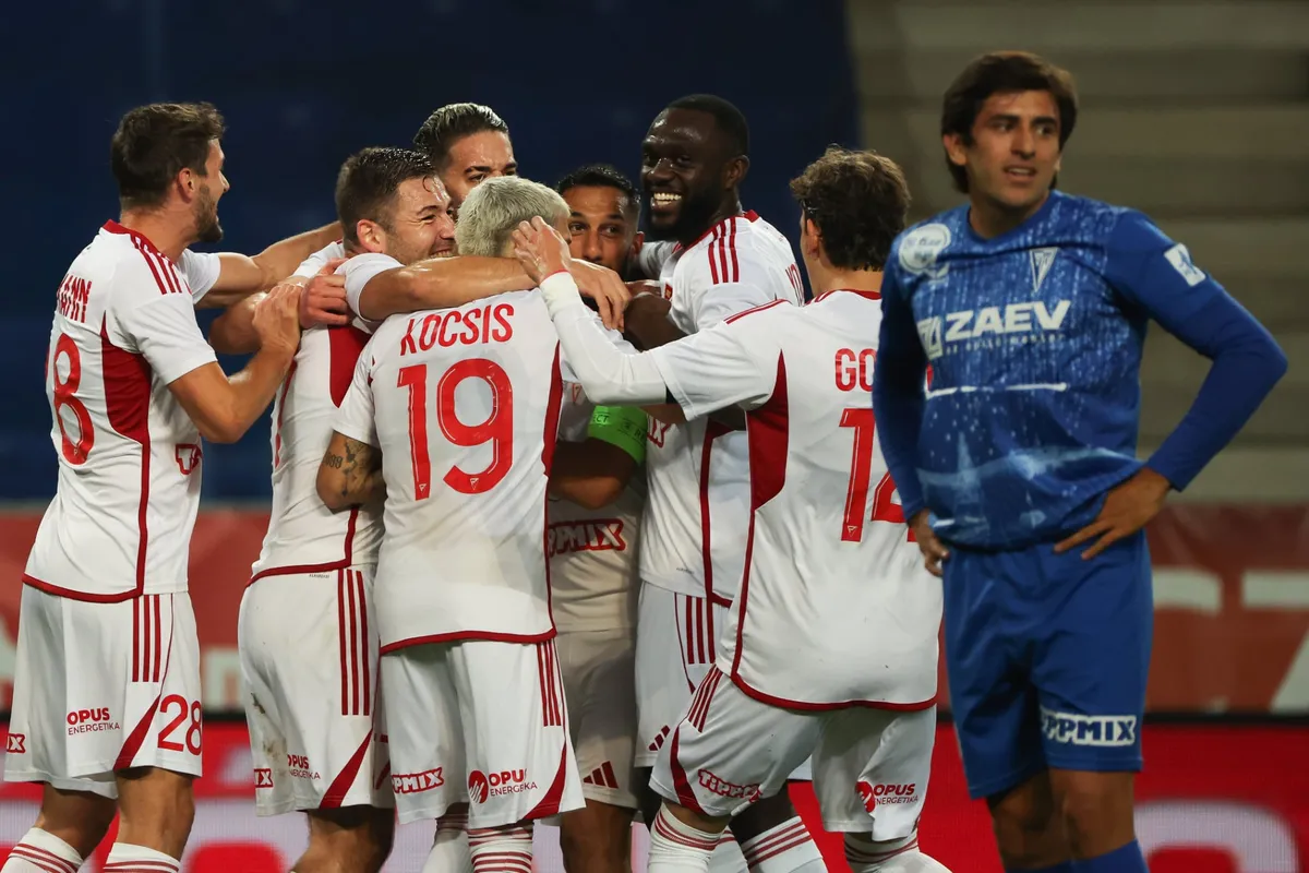 Szuhodovszki ballábas, távoli szabadrúgását elvétik a vendégvédők, jobbról jobbal az ötös sarkáról laposan középre passzol Mejías, Bárány ballal a bal alsóba lő becsúszva, négy méterről. 1–0, ha a VAR is úgy látja.