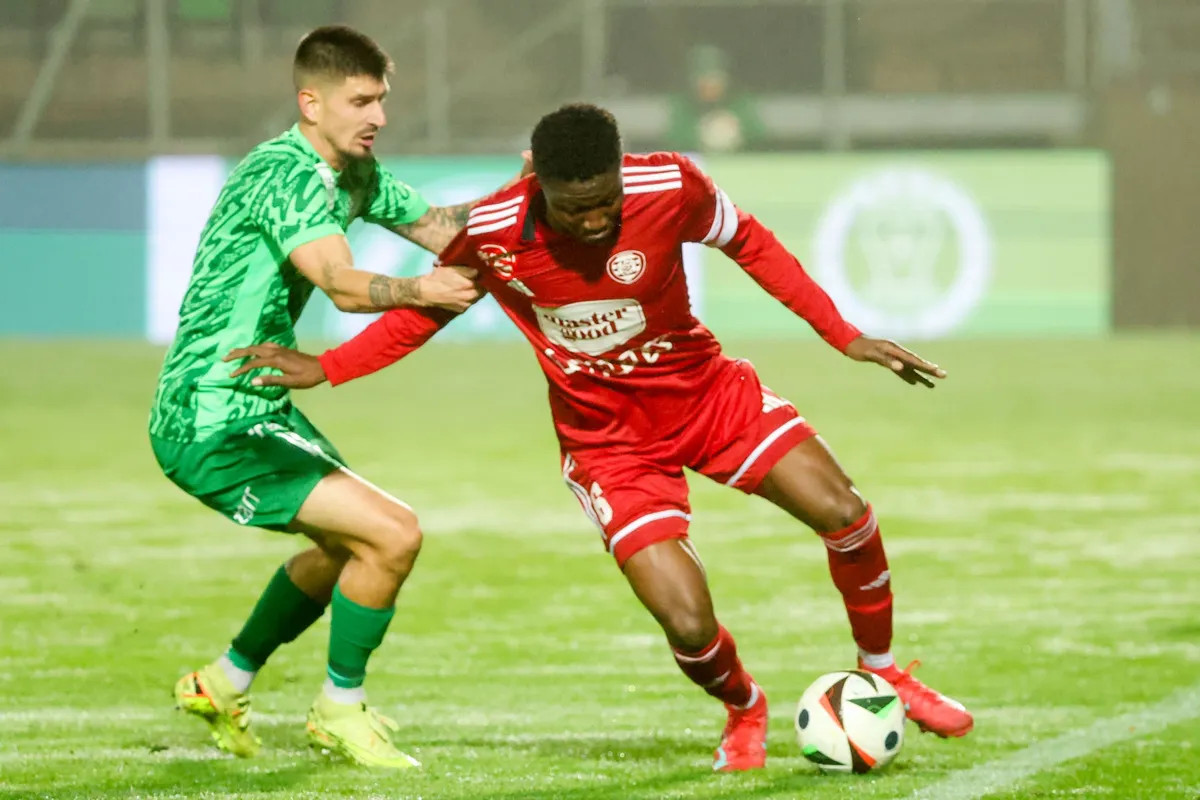 Balogh passza után Silye bal oldali beadása pontatlan.