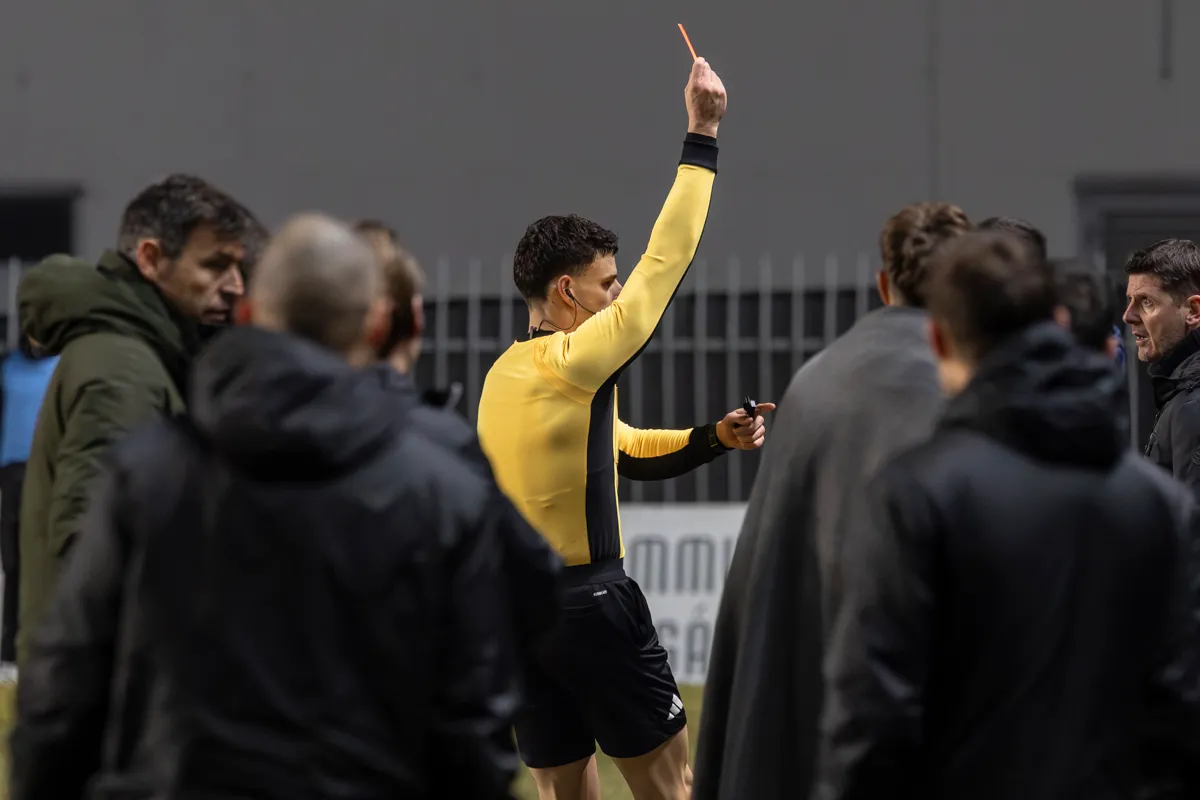 A kispadnál reklamáló Borbély Balázs kap egy sárga lapot.