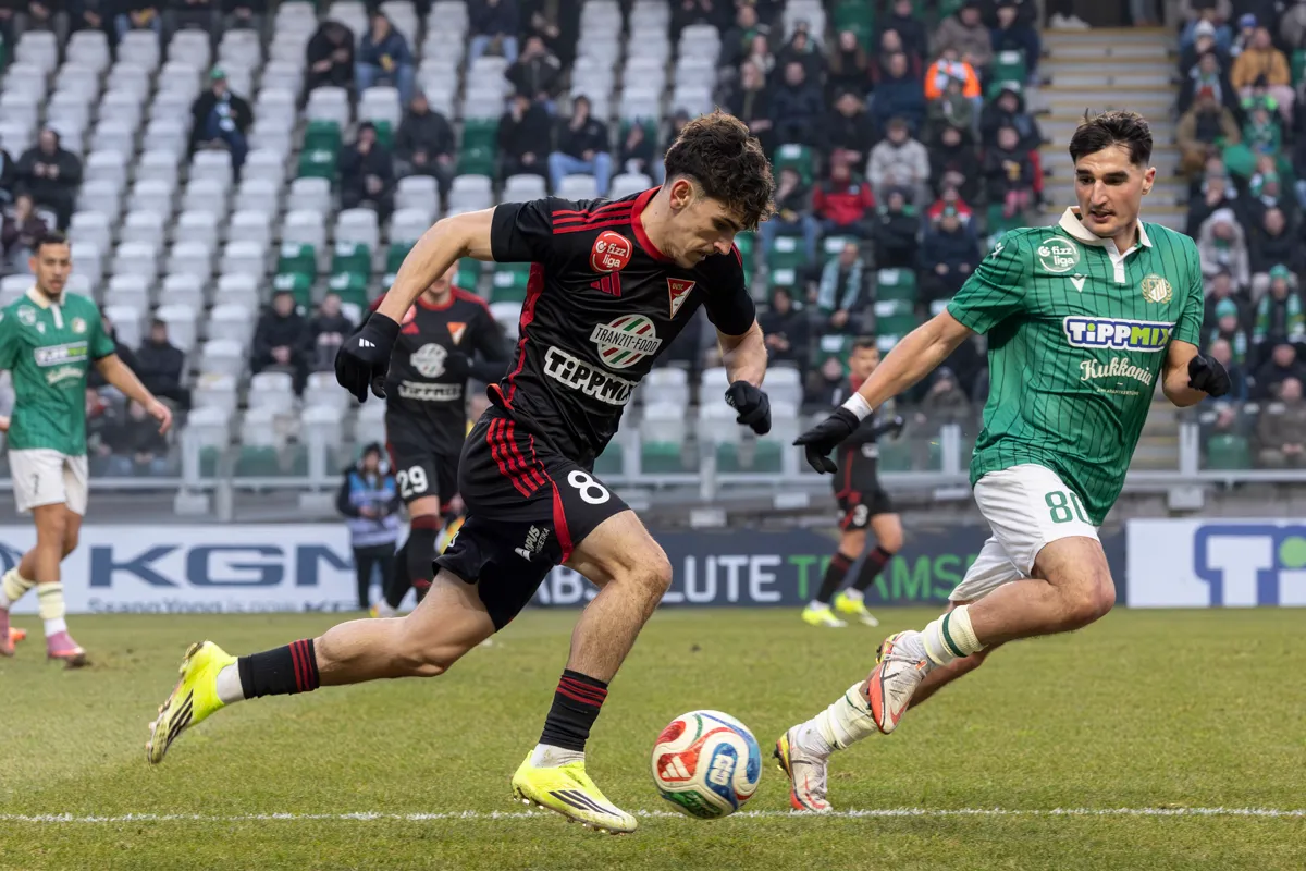 Szűcs Tamás indult volna meg a győri tizenhatos felé, de hosszan tolta meg a labdát.