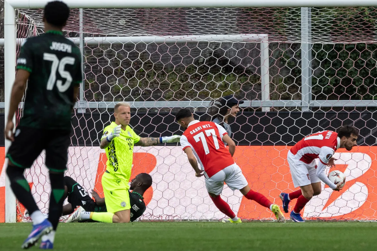A ferencvárosi térfél közepén szerzett labdát a Braga. Zalazar 17 méterről lőtt, lövése levágódott Raemaekersről, a lecsorgót Grillitsch 19 méterről lőtte a bal alsó sarokba. 2–0!