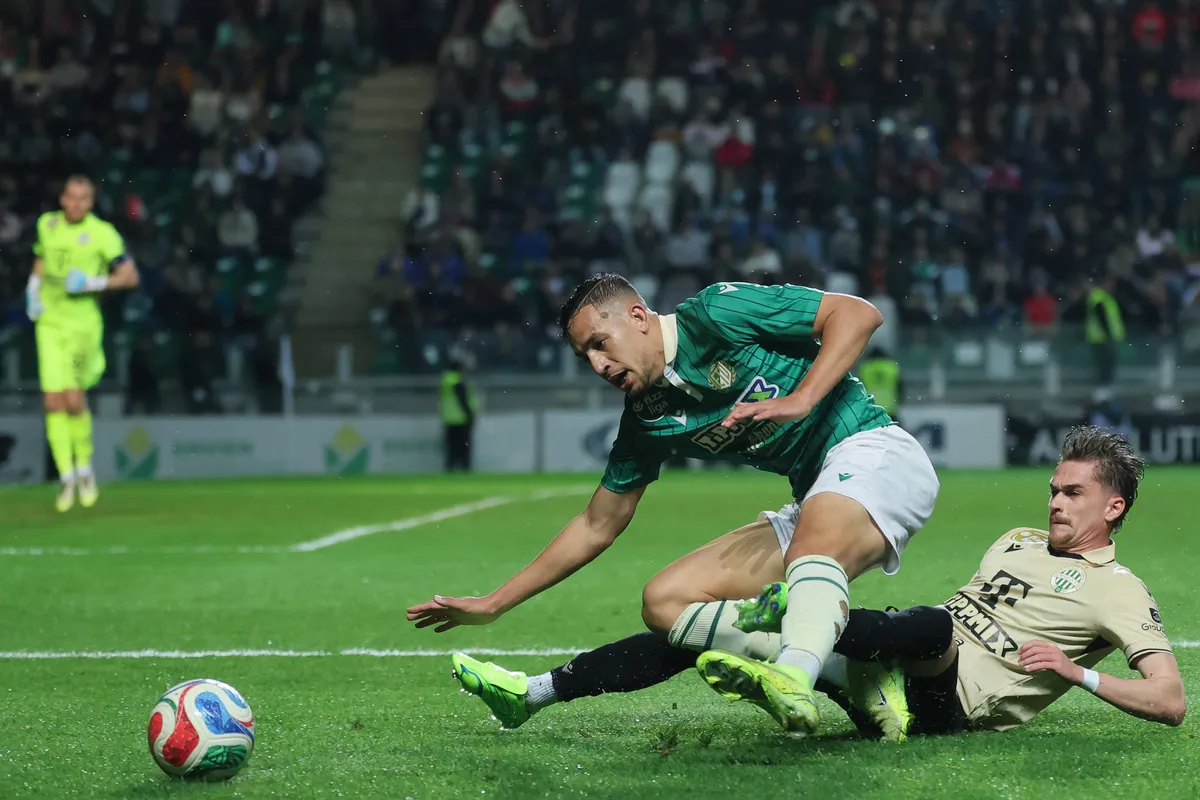 Vizsgálódik a VAR. Csinger rántotta le a gólhelyzetben kitörő Josephet, azonban les miatt a győriek kaptak szabadrúgást.