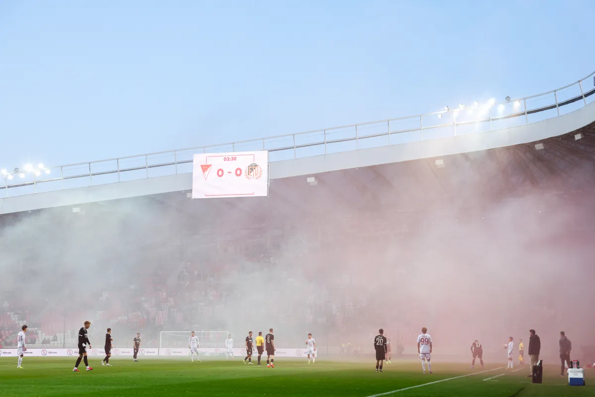 Áll a játék, mivel elég nagy a füst – a szurkolók nem spóroltak a pirotechnikával.