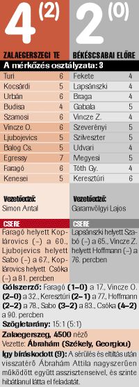 Végül is megérdemelten nyert a bajnok a tabella utolsó helyén szerénykedő Békéscsaba ellen, de tegyük hozzá, akár kellemetlen meglepetés is érhette volna a hazaiakat, akik úgy hitték, futás nélkül, rutinból is nyerhetnek. Végül is nekik lett igazuk, mert lássuk be, amint rákapcsoltak az egerszegiek, azt csináltak a vendégvédelemmel, amit csak akartak. Végül is meghallgattatott Garamvölgyi óhaja is, sőt, még örülhetett is a szakember, hiszen nem ötnél, hanem négy gólnál megállt a hazai gólgyártás. Az utóbbi időkhöz képest valamivel jobban és bátrabban futballozott a Békéscsaba, de látható, ez is kevés a győzelemhez, sőt, még a pontszerzéshez is.