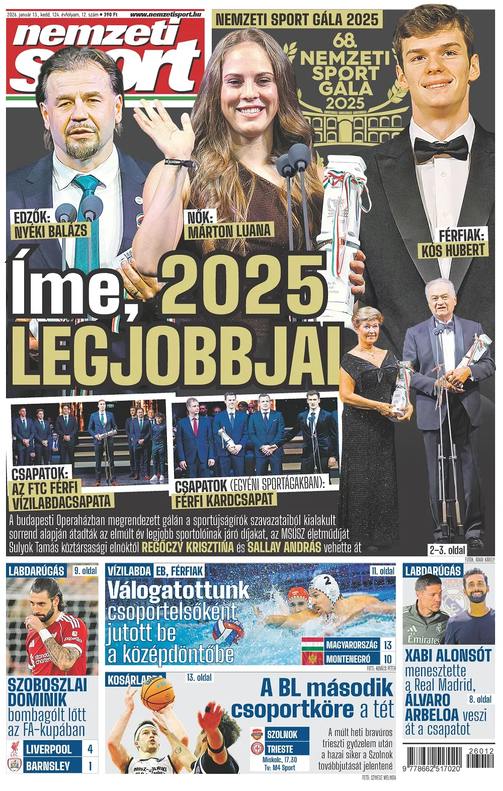 Kós Hubert és Márton Luana lett 2025 legjobb sportolója; Vedran Bosnic szerint a tökéletesnél is jobb meccs kell a Szolnok továbbjutásához