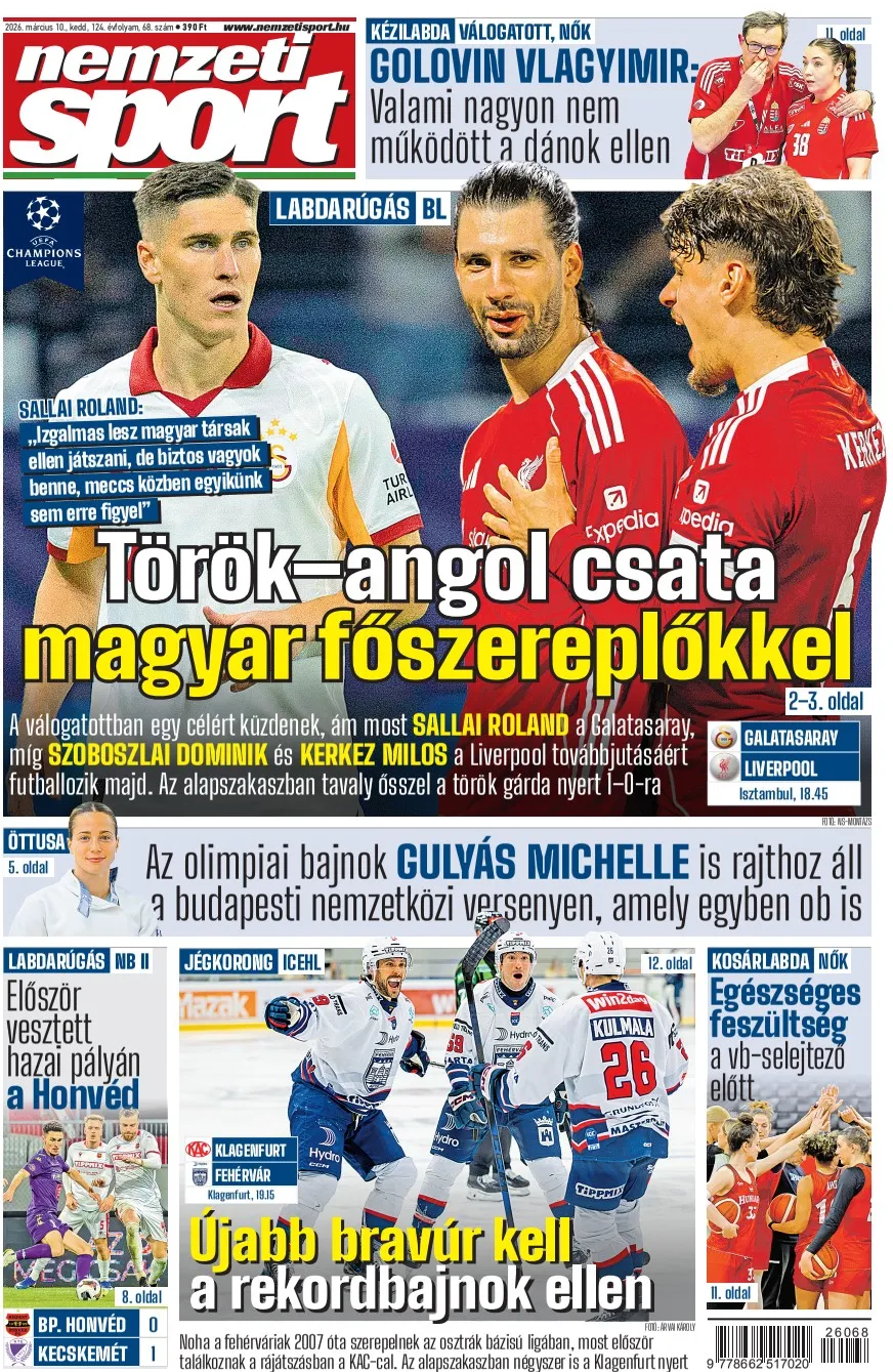 Magyar futballisták feszülnek egymásnak a Bajnokok Ligája legjobb tizenhat együttese között. A Galatasaray légiósa, Sallai Roland lapunknak elismerte: hallotta a híreket, miszerint a Liverpool érdeklődik iránta, de azt kérte az ügynökétől, „hagyjon nyugodtan dolgozni és koncentrálni a jelenlegi feladataimra. Nekem most az a legfontosabb, hogy a Galatasaray játékosa vagyok, és a csapattal együtt elérjük azokat a célokat, amelyeket kitűztünk erre az idényre. Nem gondolkodom váltásban, főleg nem az idény közepén, amikor ennyi fontos mérkőzés vár ránk.” Hozzátette: „Izgalmas lesz magyar társak ellen játszani, de biztos vagyok benne, meccs közben egyikünk sem erre figyel.”