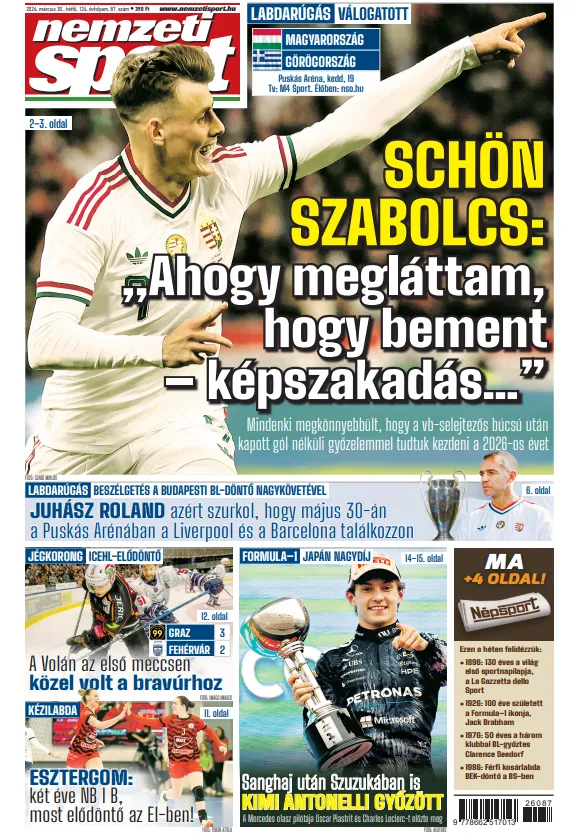 Kimi Antonelli már az összetettben is vezet a Formula–1-ben. A Mercedes-pilóta Japán Nagydíj-győzelméről, reakciókkal, statisztikákkal és nyilatkozatokkal Zsoldos Barna két oldalon számolt be.