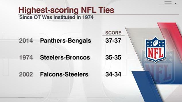 Már maga az sem szokásos, hogy egy mérkőzésen nem születik döntés 60 perc alatt, de hogy az ötperces ráadásban sem kerekedik egyik csapat a másik fölé, az meg pláne. A Carolina cincinnati vendégjátéka mégis ezt tette, miután Mike Nugent rúgó az utolsó másodpercekben könnyű mezőnygólt rontott. Érdekesség, hogy a Bengals előző döntetlenje (még 2008-ban) úgy született, hogy Shayne Graham rúgó 13 másodperccel a vége előtt mezőnygólt rontott. Cam Newton 17 futással próbálkozott a Bengals ellen (hozott belőle 107 yardot és egy TD), ez pedig Tim Tebow 2011-es 22-je óta a legtöbb, amelyre irányító vállalkozott egy meccs alatt.