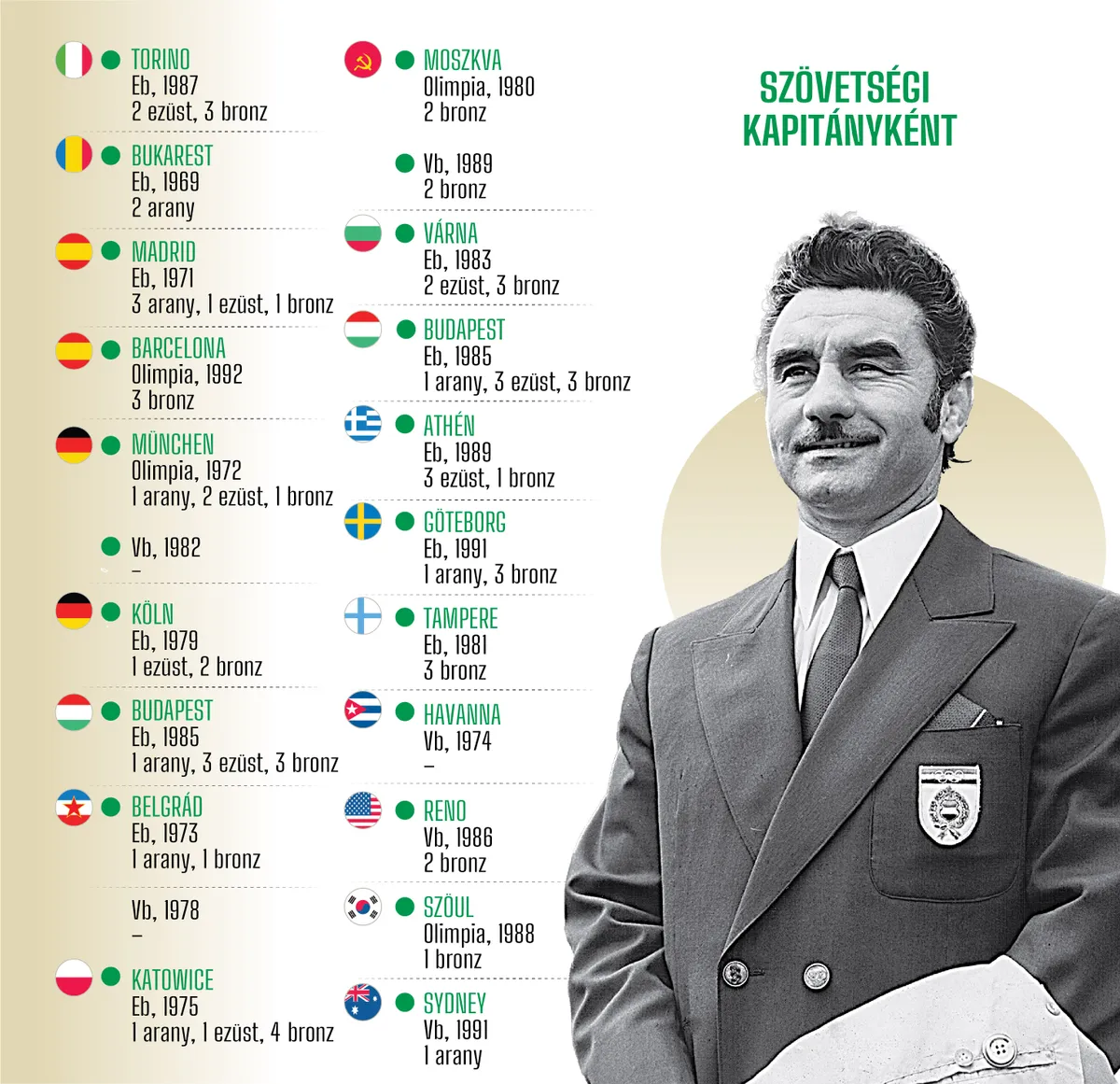 Infografikáinkon a bokszlegenda amatőr és profi mérkőzései, valamint szövetségi kapitányi sikerei.