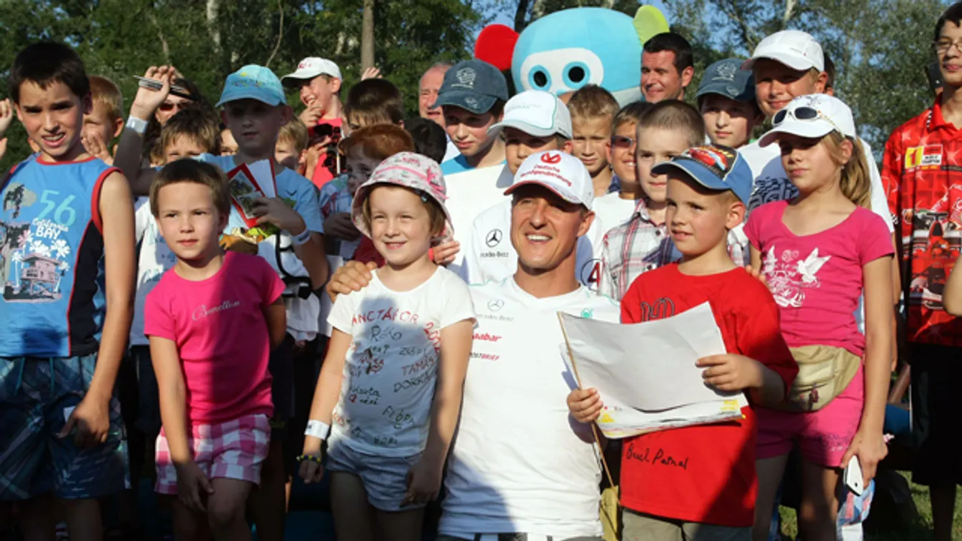 A Mercedes pilótája kíváncsi és lelkes gyerekek kérdésére válaszolt a fóti lovas terápiás központban.