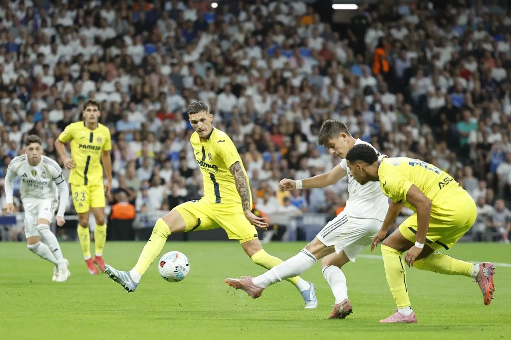 Az első félidő nagy hazai mezőnyfölényt hozott, és öt hazai helyzetet: egyszer Güler lőtt az ötös bal sarka elől a kapu fölé, kétszer a 100. realos mérkőzésén szereplő Aurélien Tchouaméni fejelt a léc fölé; Mbappé pár remek passz mellett egyszer kapura lőtt, de a jobb alsó előtt vetődve fogta a labdát Arnau Tenas, Renato Veiga meg hatalmasat mentett Franco Mastantuono próbálkozásánál.
