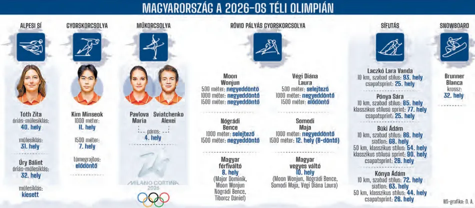 16 magyar sportoló képviselte a piros-fehér-zöld színeket a Milánóban és az Olasz-Alpokban megrendezett téli olimpián. Az előző két olimpia történelmi sikereit nem sikerült megismételni, a mindkét eddigi „téli aranyérmünkben” elévülhetetlen érdemeket szerző, édesanyjuk révén magyar Liu testvérek, Shaolin Sándor és Shaoang már kínai színekben készültek 2026-ra. Közülük meglepetésre csak Shaoang jutott ki az olimpiára, de nem tudta megvédeni a címét 500 méteren, a váltóban pedig utolsó emberként pont ő vállalta túl magát, ami Kína döntőbe jutásába került.