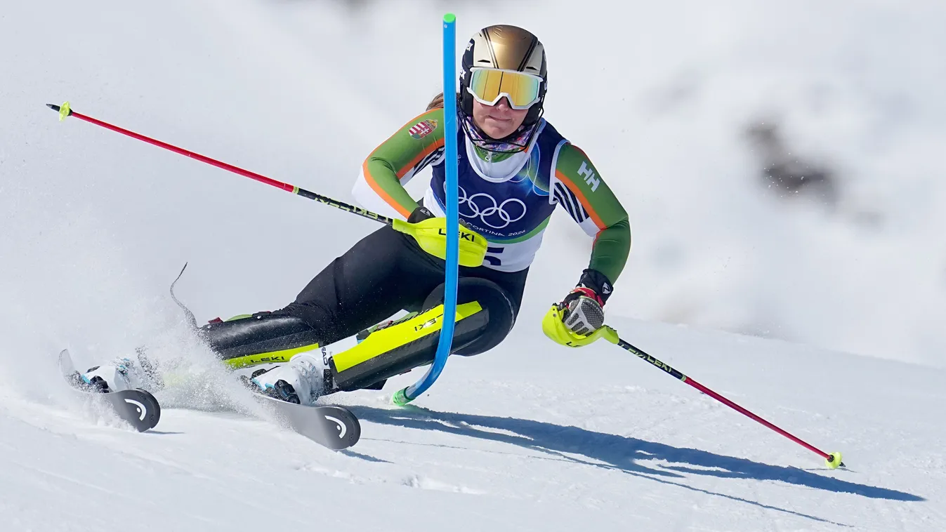 Tóth Zita 36. a női műlesiklás első futamában, Shiffrin vezet